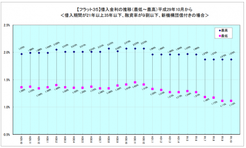上記のグラフは、フラット35の住宅ローン金利の推移を表したものです。