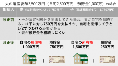 つまり、改正前までは、残された配偶者が自宅に住み続けられなくなったり、預貯金を十分に相続できなかったりするケースが多くあったということです。