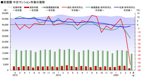 ■首都圏マンション:成約件数52.6%減(前年同月比)