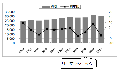 ただその一方で、中古マンションはリーマンショック後も成約数を伸ばしていました。