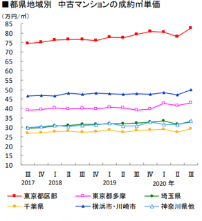 【2020年Ⅲ期の首都圏中古マンション平均平米単価】