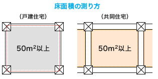 現行の住宅ローン減税は、広さ要件が「床面積50㎡以上」となっています。ただし、戸建住宅とマンションなどの共同住宅では、床面積の計測方法が異なります。