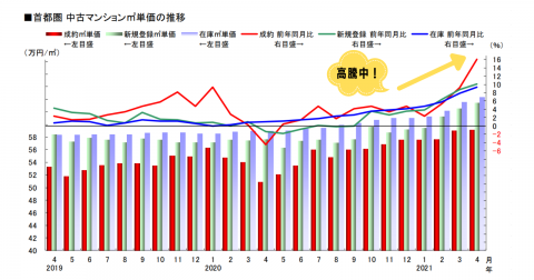 2021年4月の首都圏中古マンション平米単価