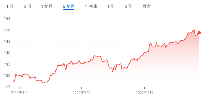 10月20日、ついに1ドル=150円にまで円安が進みました。為替介入により、150円になったのは一時的でしたが、今後、1ドル=160円、170円とさらに円安が進むことも懸念されます。