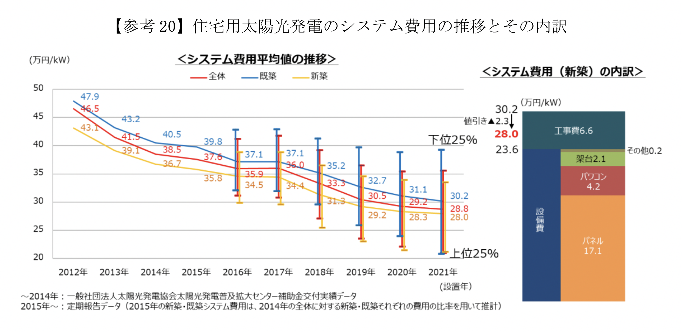 売電価格が下がっている大きな要因は、設置費用の引き下げにあります。