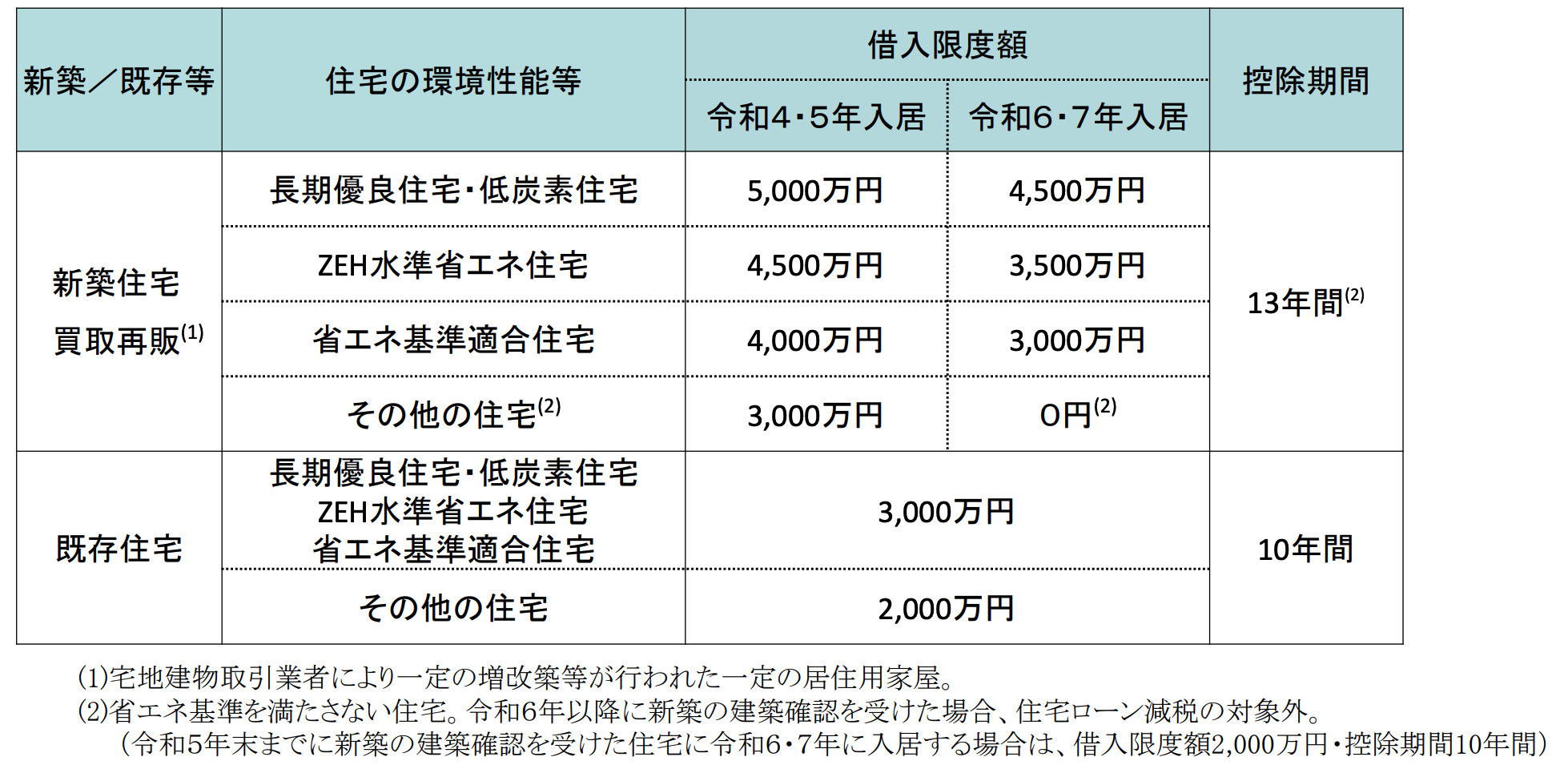中古住宅は、省エネ基準に適合している住宅と適合していない住宅とで借り入れ限度額に1,000万円の差があります。