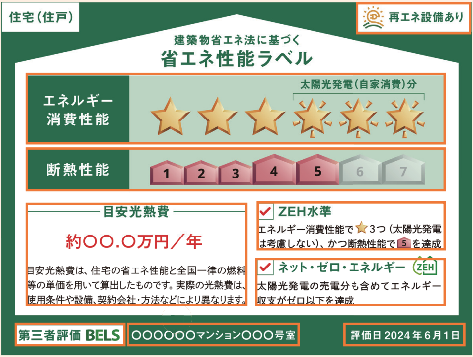 省エネ性能ラベルには、主に以下のようなことが記載されます。