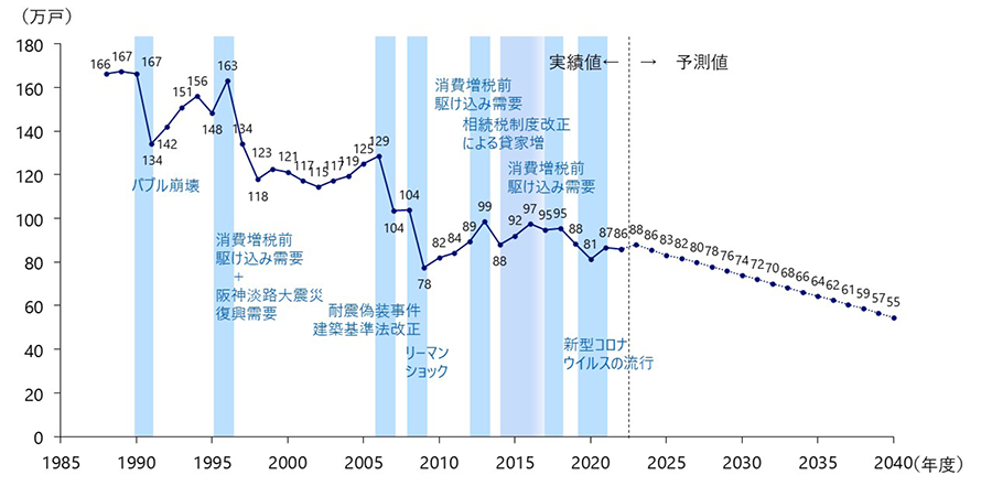 新設住宅着工戸数の実績と予測(出典:野村総合研究所ニュースリリース)