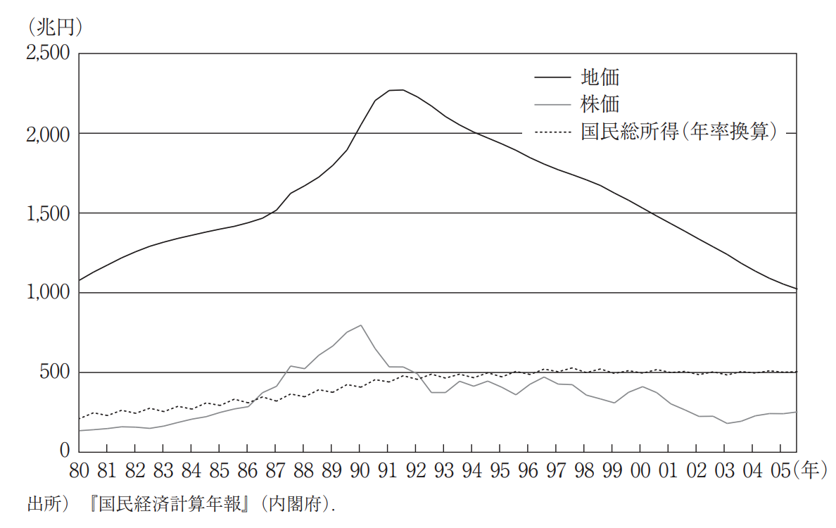 空き家の増加により、供給過多となった地域では不動産の暴落が危惧されます。近年は不動産価格が高騰傾向にありますが、ここでいう「不動産価格」とは成約にいたった不動産の平均価格であり、日本の土地時価総額はすでにバブル期のピーク時の半分程度になっています。